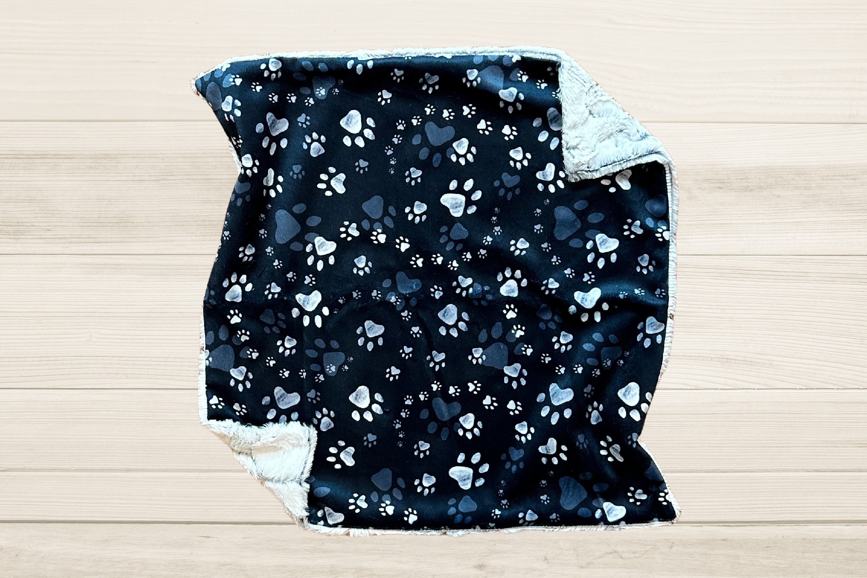 Wrap your baby in the softness of our Puppy Paw Print Plush Lovey. This navy blue minky blanket features charming paw prints, creating a cozy and adorable companion for snuggling and cuddling. It makes a thoughtful baby shower gift that is both practical and comforting. Give the gift of warmth and love with our Puppy Paw Print Plush Lovey!