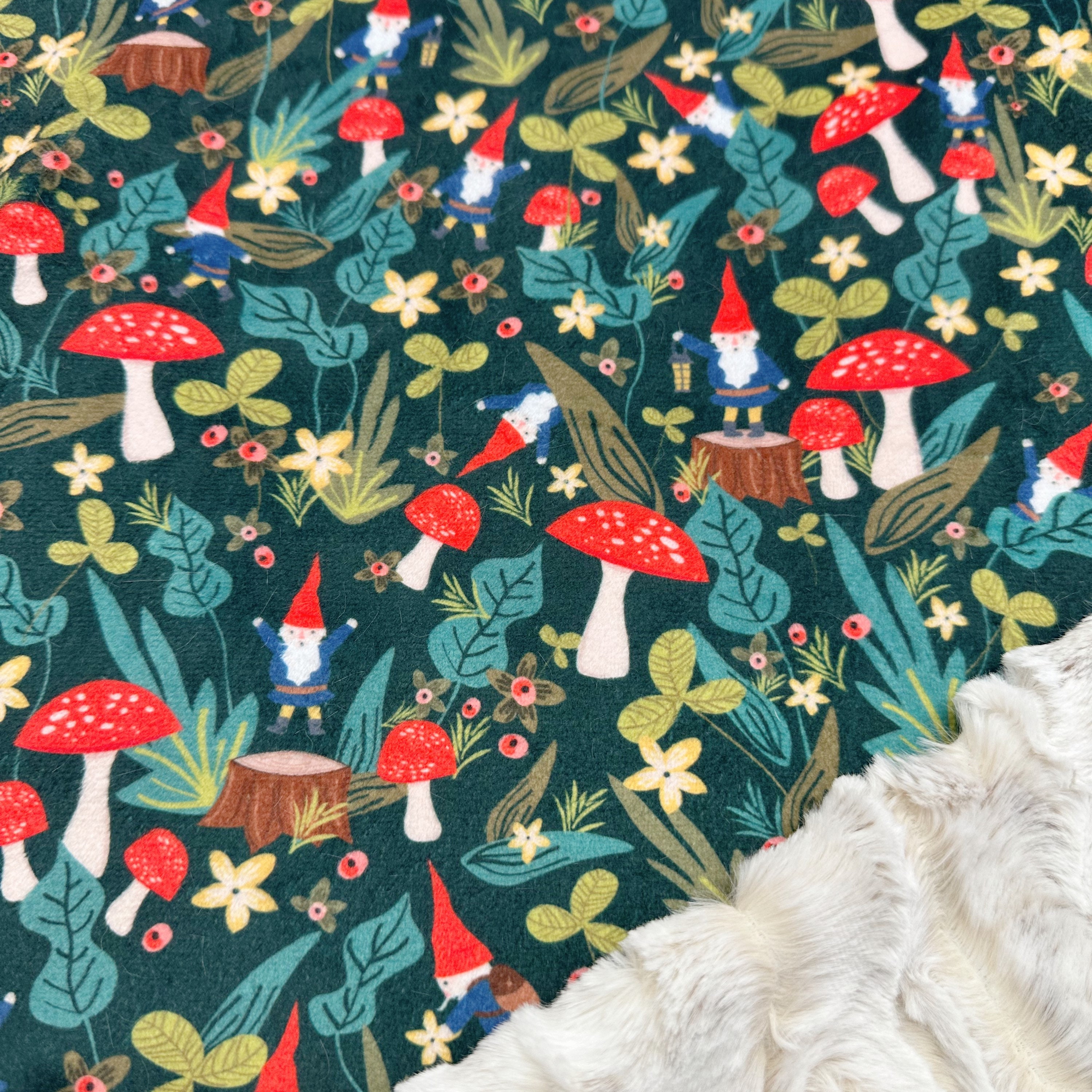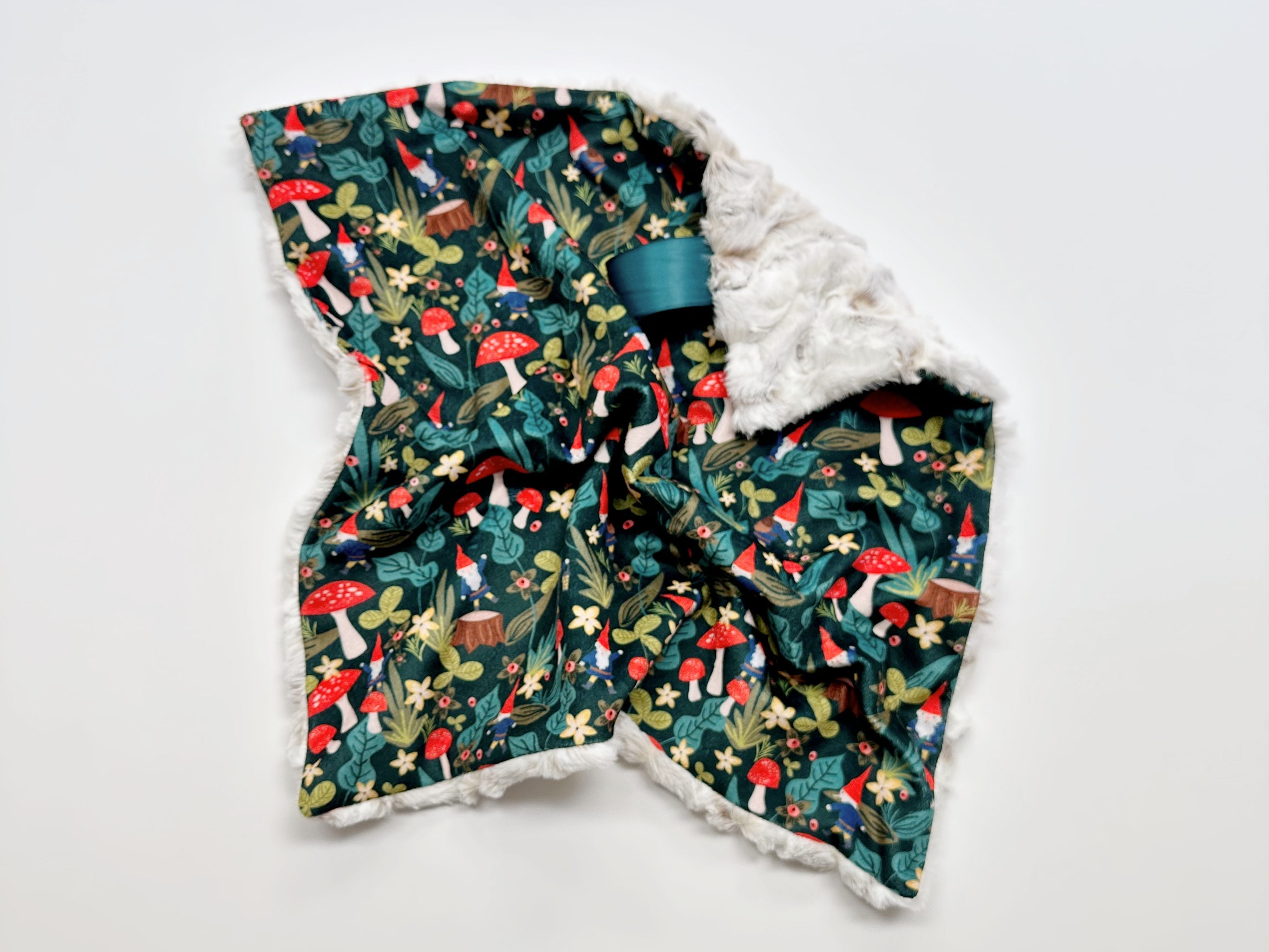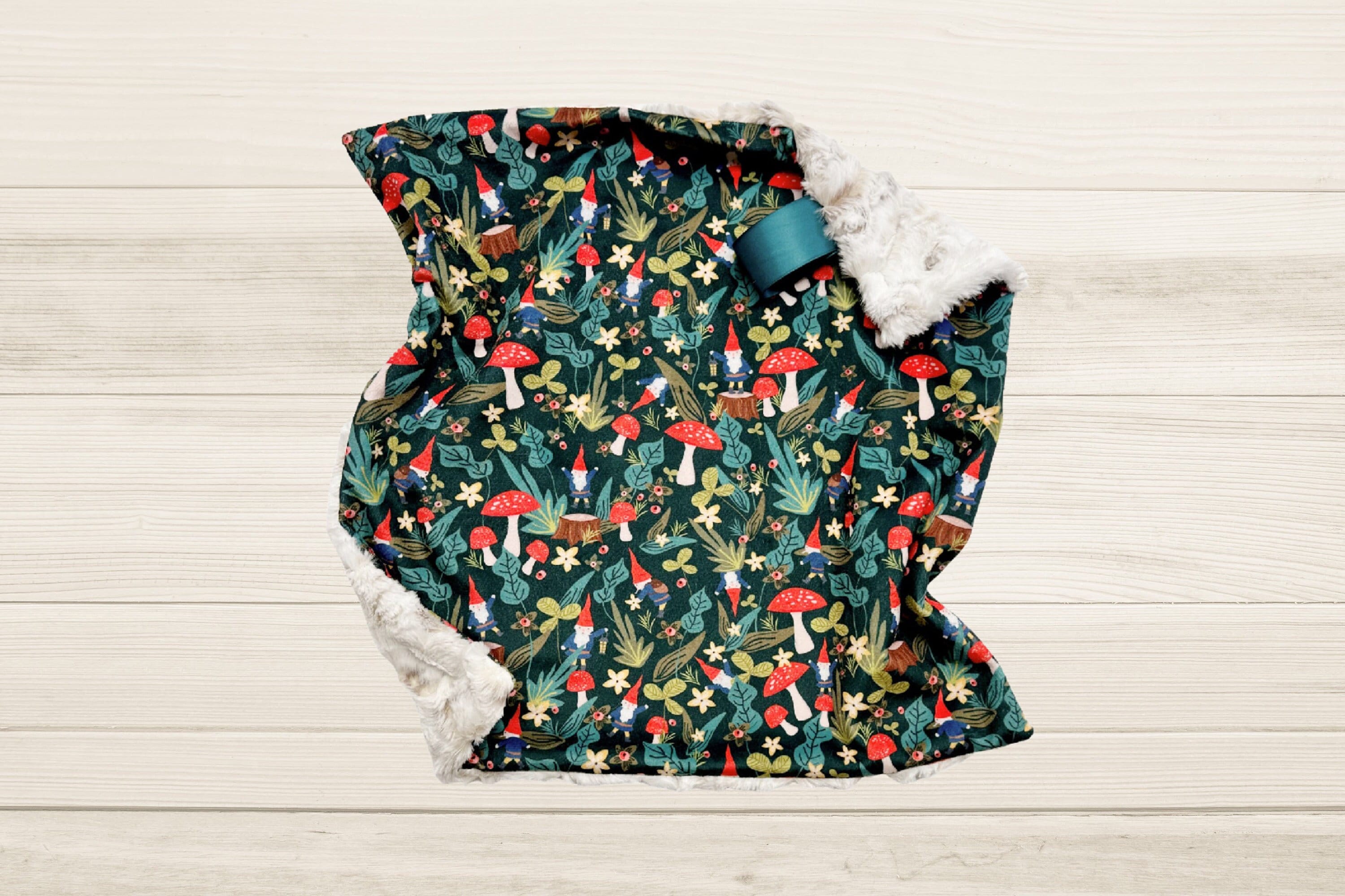 Looking for a unique baby blanket that is cute and cozy? Look no further than our Woodland Gnomes with Mushrooms Lovey Blanket! This handmade security blanket is made of high-quality materials that are gentle on your baby's skin – perfect for those precious early months of life. The whimsical design adds a playful touch to your nursery décor, and it makes a great gift for the new little addition to the family!
