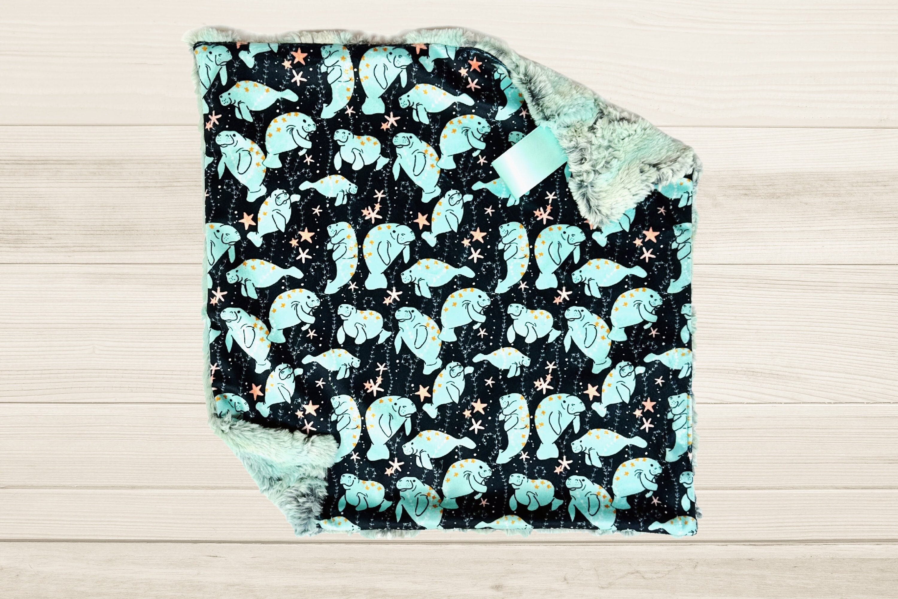 https://www.etsy.com/listing/1500195228/manatee-minky-baby-blanket-aqua-and-blue?