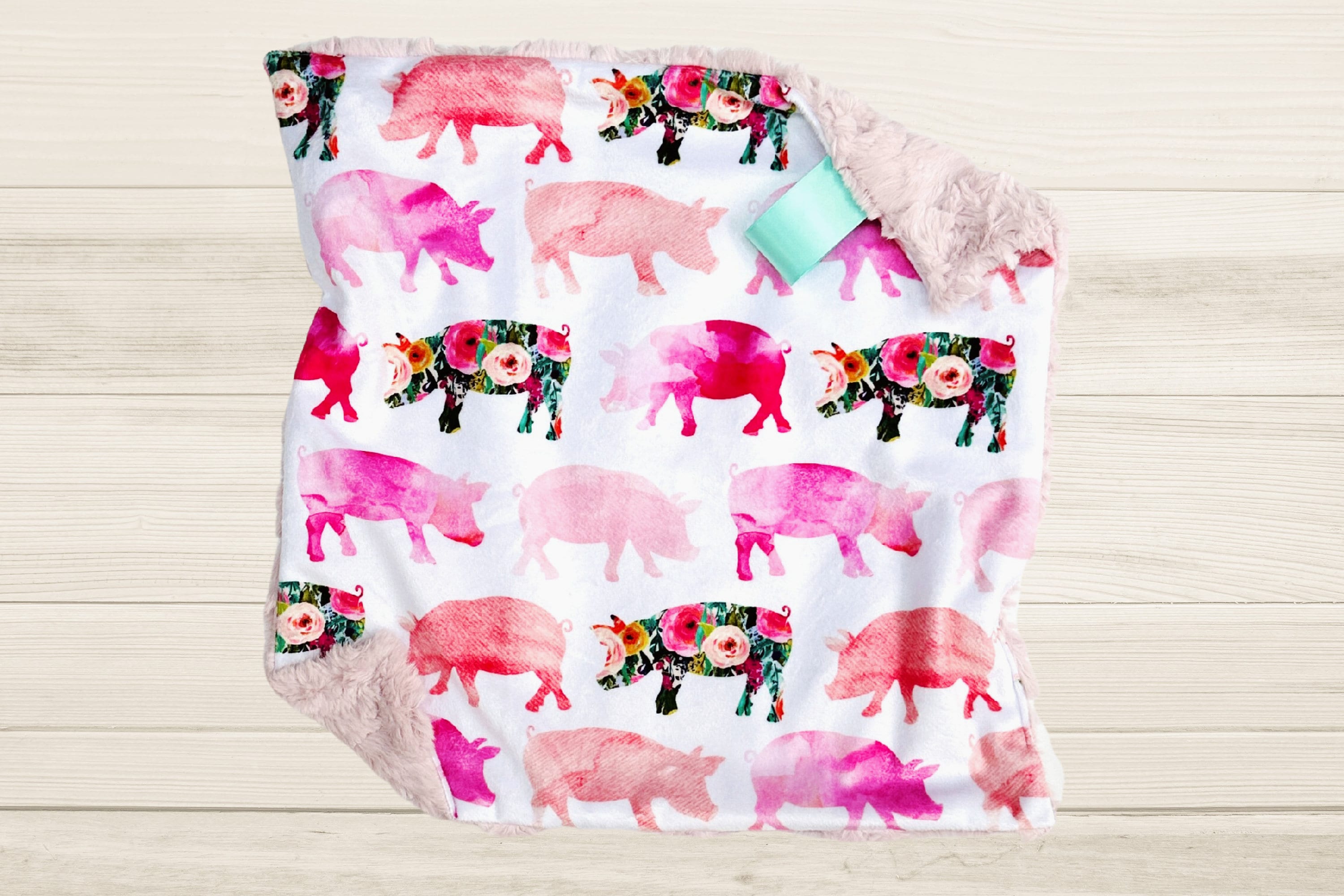 Introducing our adorable Pig Minky Lovey Blanket, designed with an enchanting combination of pink and floral pigs! Delicately crafted to provide ultimate comfort, this security blanket is perfect for your little one's farm-themed nursery decor. Made from soft and cozy minky fabric, it offers a soothing touch and becomes an instant favorite for cuddles and snuggles. Whether it's naptime or playtime, this lovable blanket will keep your baby girl cozy and secure. It also makes a charming baby girl gift, sure to bring smiles and warmth to any occasion.