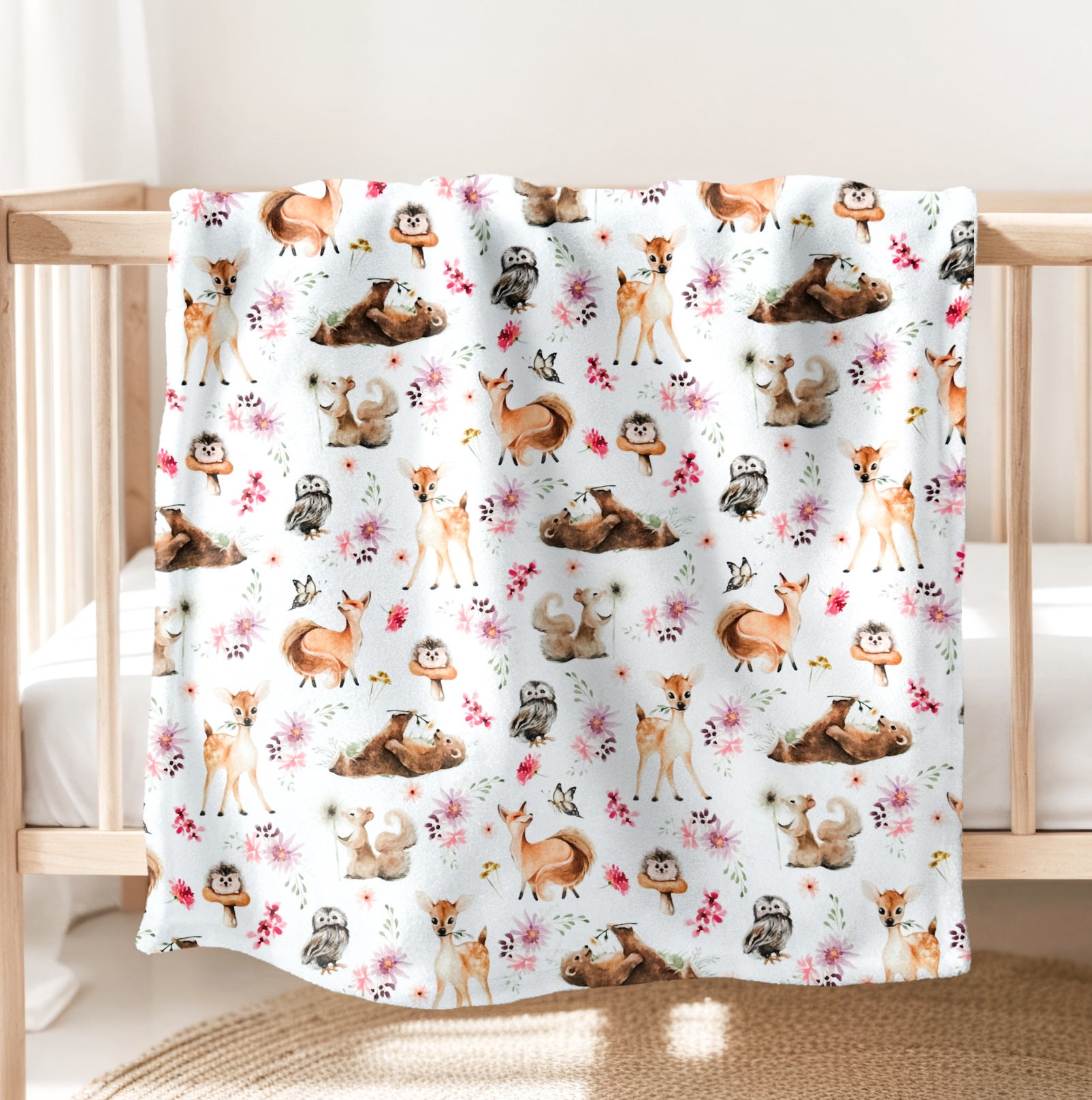 Looking for the perfect baby gift? Our Woodland Animals Baby Blanket is handmade in Wisconsin, featuring soft minky fabric and a plush faux fur backing that’s lightweight yet cozy for year-round use. It's the ideal baby must-have for stroller rides, tummy time, or snuggles at Grandma's.