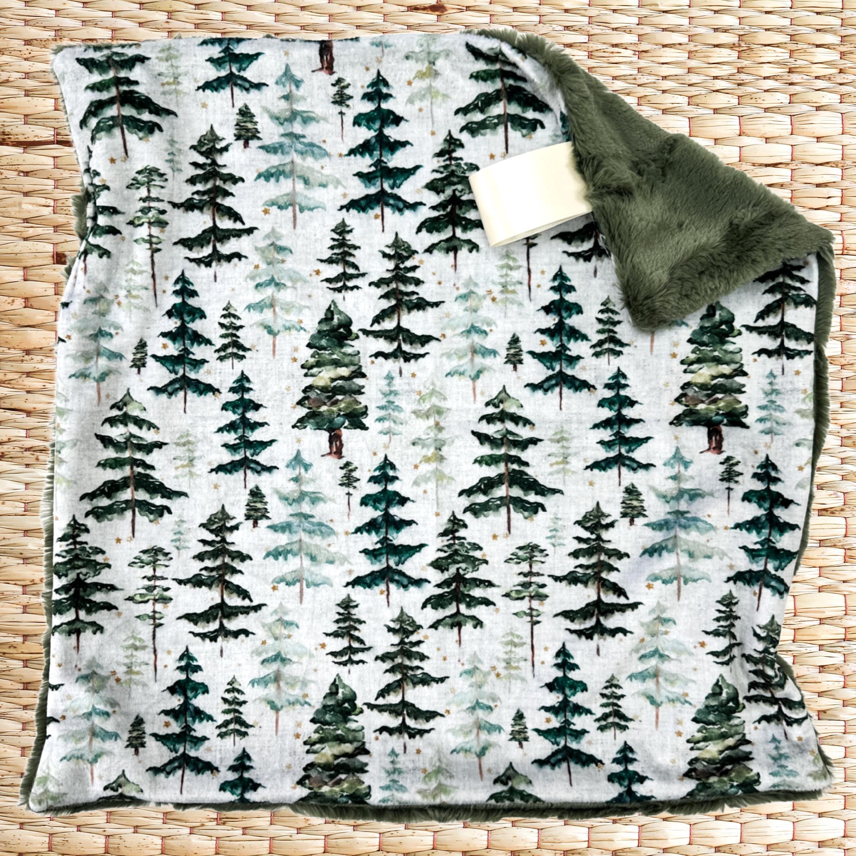 This cuddly and charming blanket features a beautiful pine forest. Crafted with soft, cozy minky material and backed with luxurious plush faux fur, this blanket offers ultimate comfort. Amazingly soft and lightweight, it’s perfect for year-round use—even in summer!