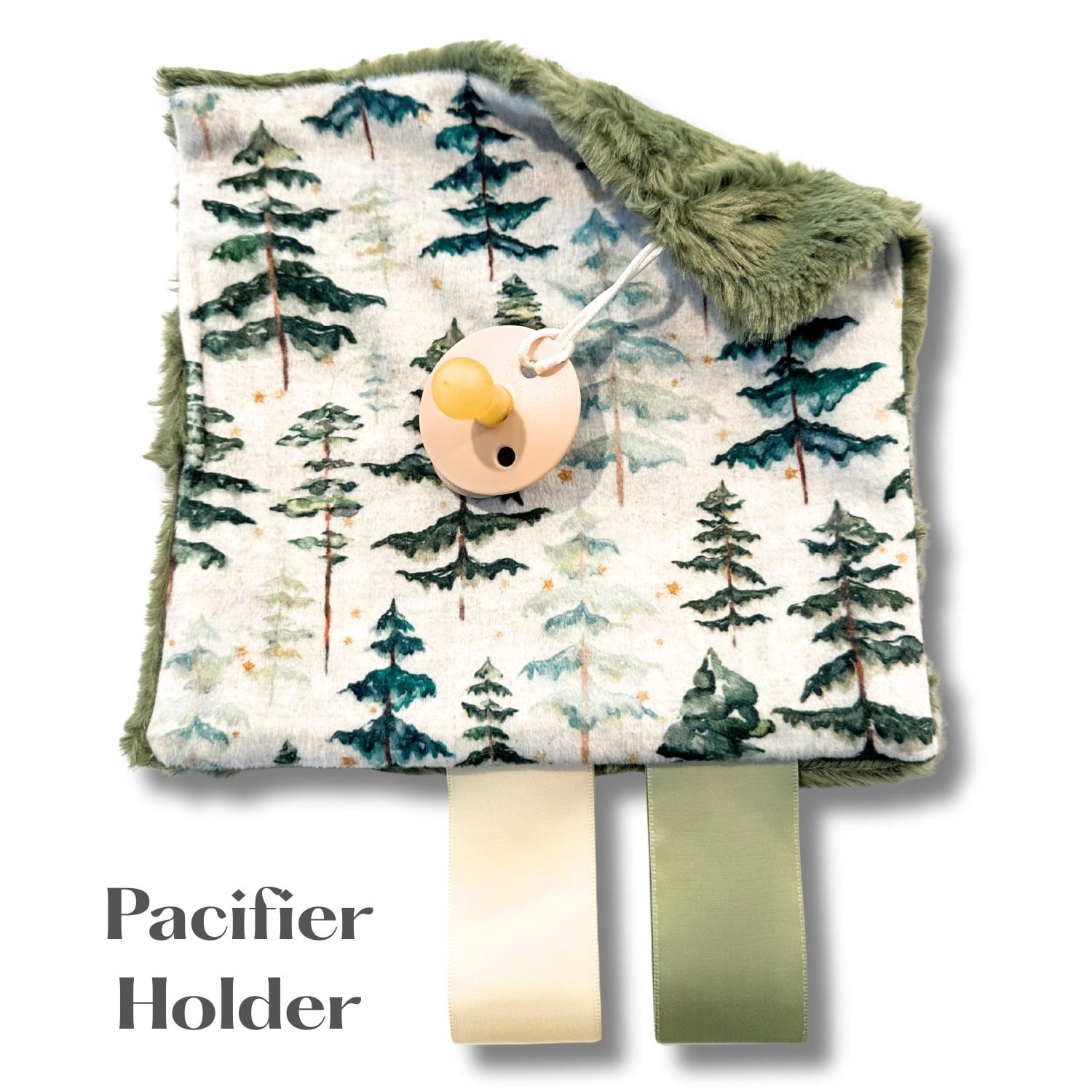 **Pacifier Holder (8x8 inches)**A mini version of our minky Lovey.  Keep your little one from dropping or           losing their pacifier ever again! These make wonderful baby shower gifts. Example in photos.