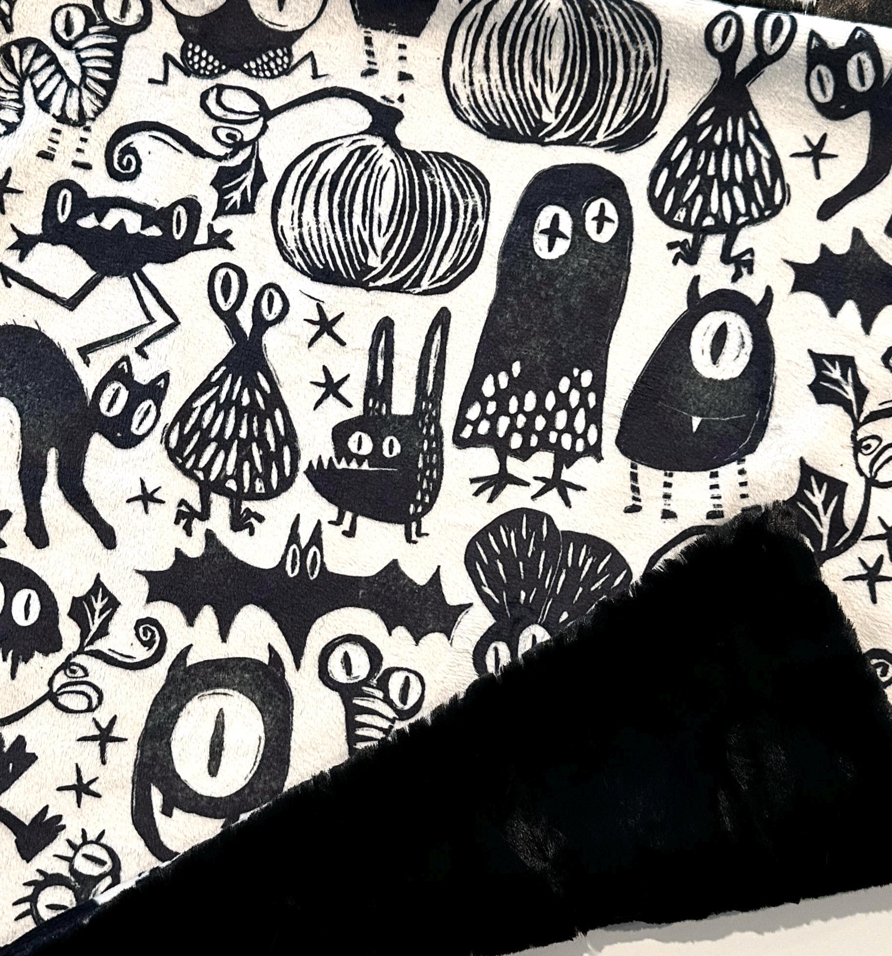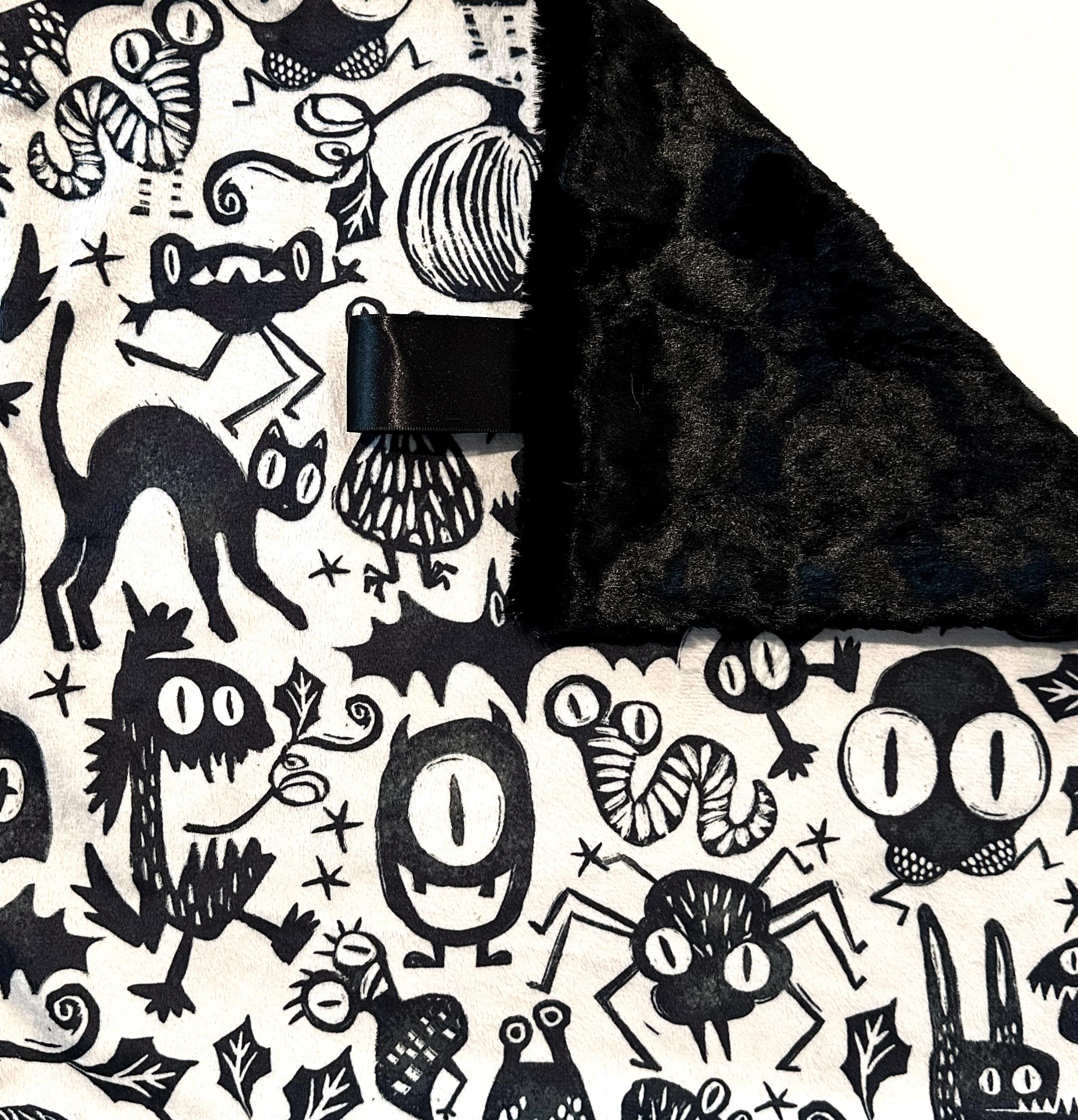 This Lovey or Baby Blanket features the cutest gothic monsters. Crafted with soft, cozy minky material and backed with luxurious plush faux fur, this blanket offers ultimate comfort. Amazingly soft and lightweight, it’s perfect for year-round use—even in summer!