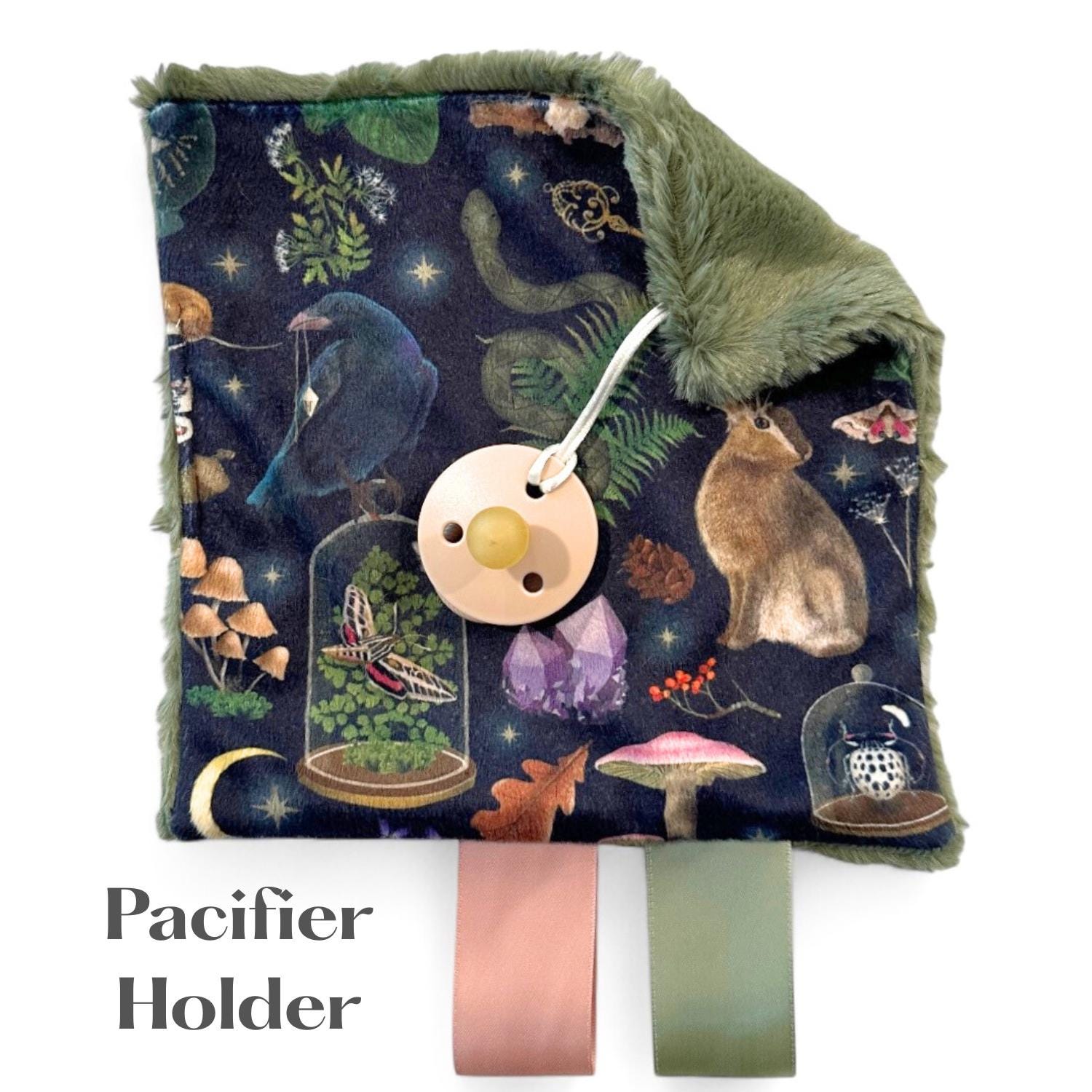 **Pacifier Holder (8x8 inches)**A mini version of our minky Lovey.  Keep your little one from dropping or           losing their pacifier ever again! These make wonderful baby shower gifts. Example in photos.