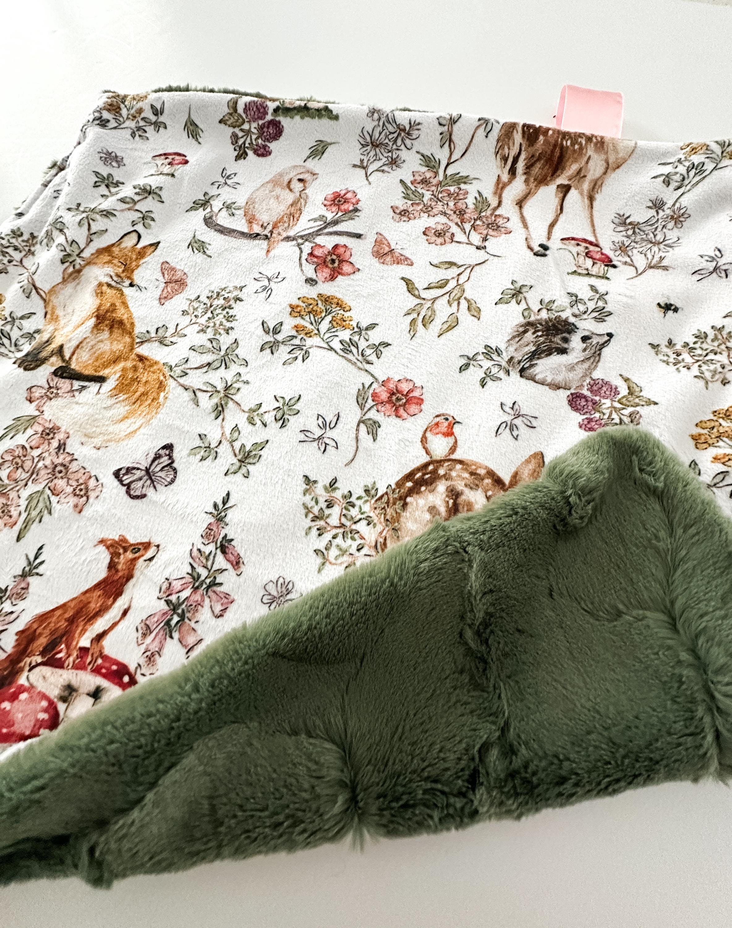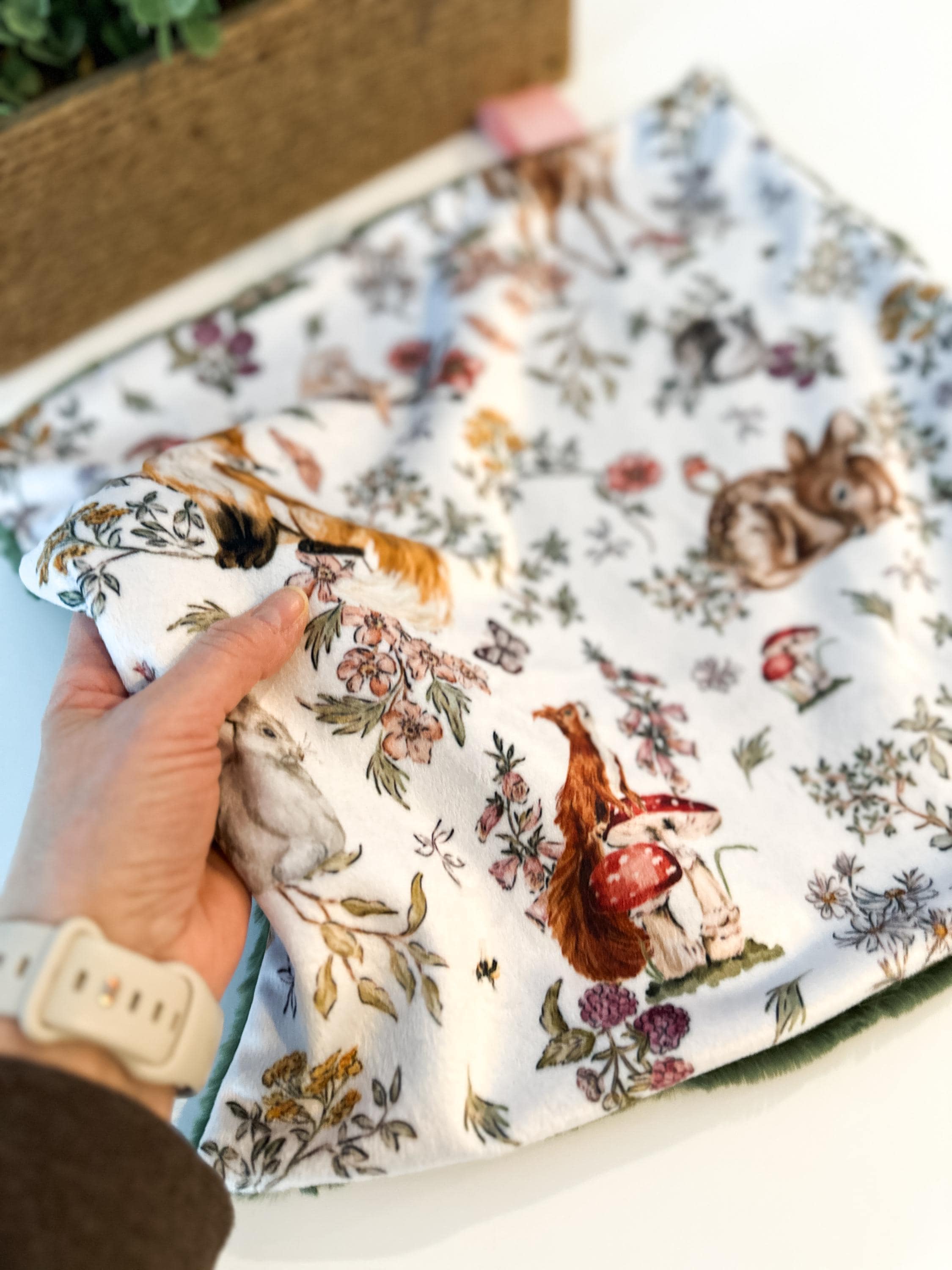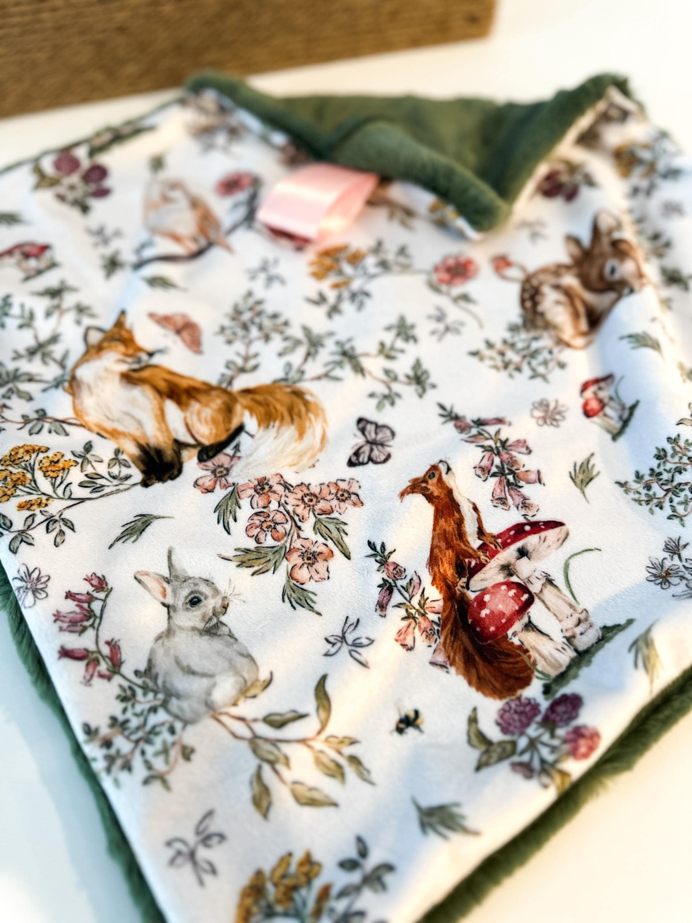 Looking for the *perfect* blanket for your little one? Our Sweet Woodland Animals Lovey or Baby Blanket is everything you need—soft, cozy, and oh-so-cuddly! Made with buttery minky fabric and a plush faux fur backing, this blanket feels like a warm hug. It’s lightweight too, so it’s perfect for every season—even those warm summer nights.
