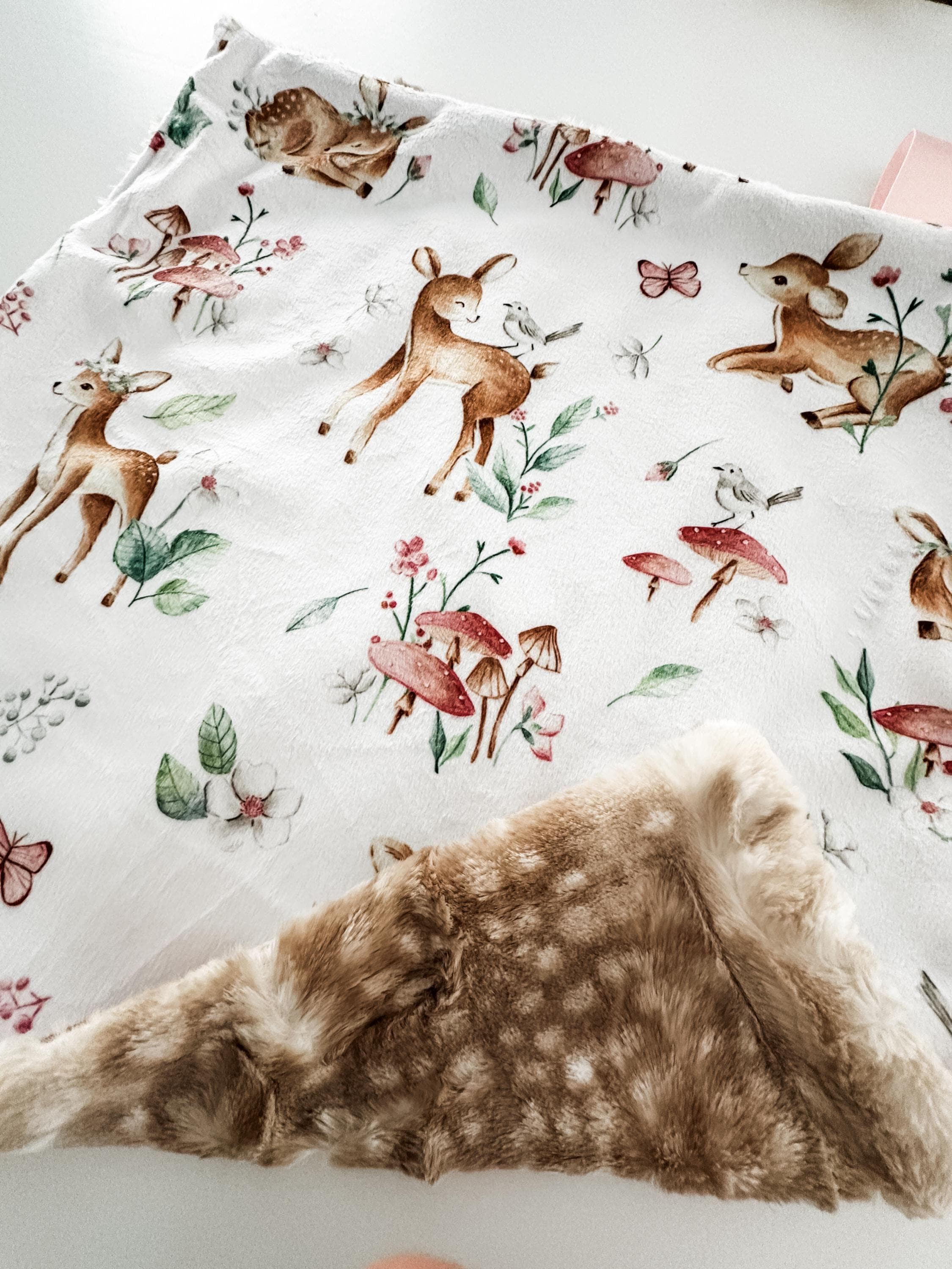 Looking for the *perfect* blanket for your little one? Our Woodland Fawn Lovey or Baby Blanket is everything you need—soft, cozy, and oh-so-cuddly! Made with buttery minky fabric and a plush faux fur backing, this blanket feels like a warm hug. It’s lightweight too, so it’s perfect for every season—even those warm summer nights.