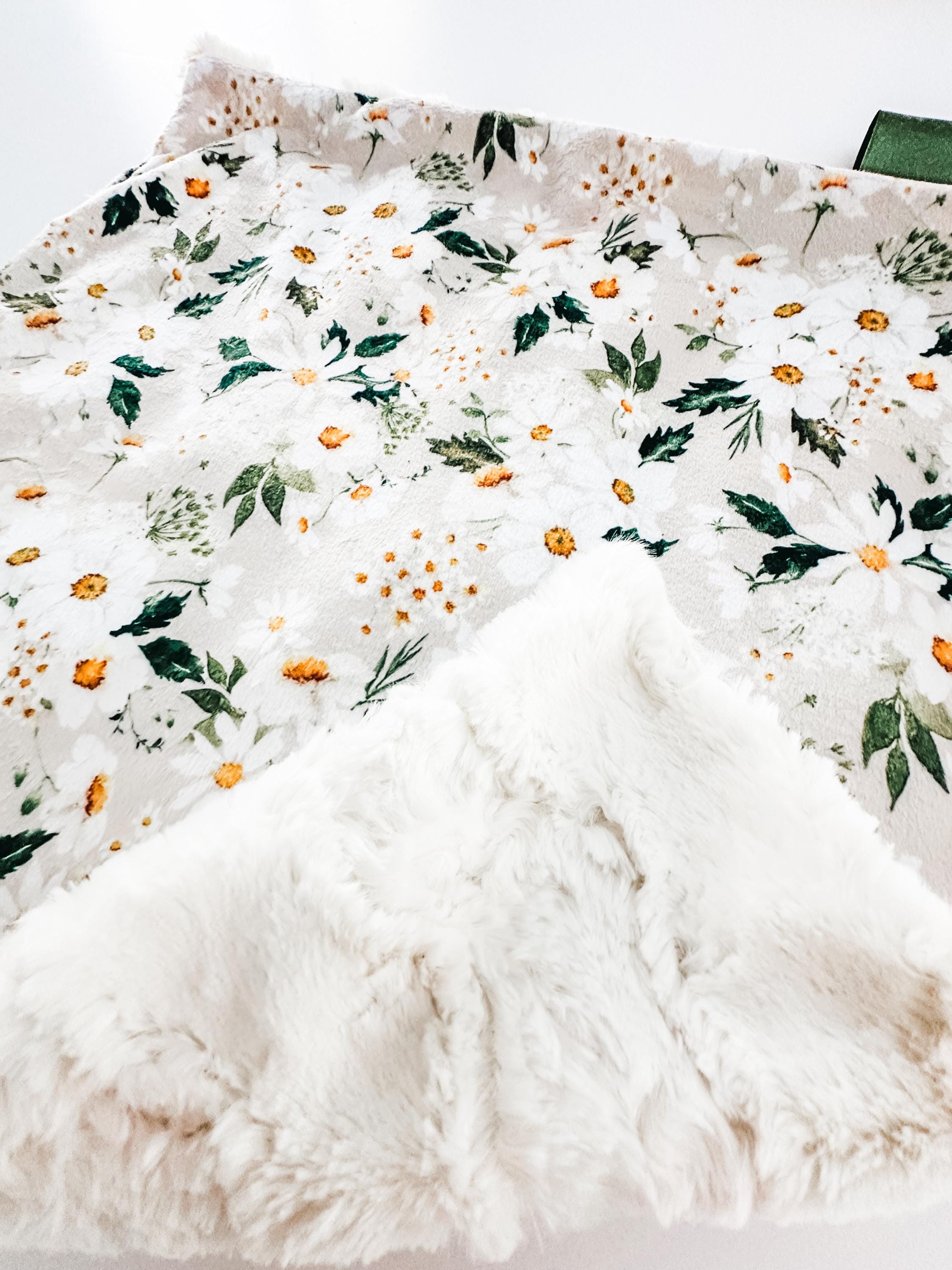 Looking for the *perfect* blanket for your little one? Our Woodland Floral Lovey or Baby Blanket is everything you need—soft, cozy, and oh-so-cuddly! Made with buttery minky fabric with the sweetest daisies, and a plush faux fur backing, this blanket feels like a warm hug. It’s lightweight too, so it’s perfect for every season—even those warm summer nights.