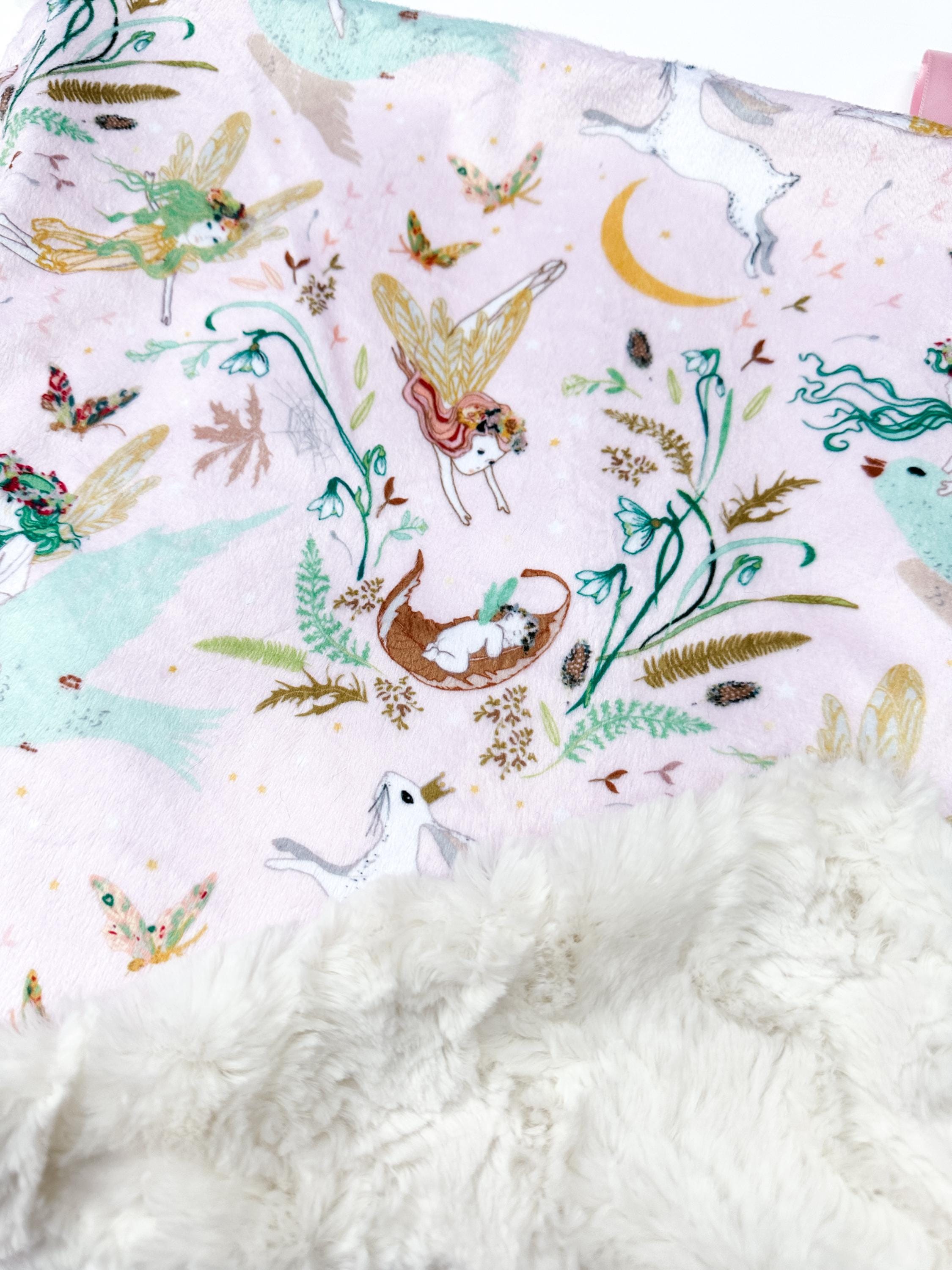 Looking for the *perfect* blanket for your little one? This adorable Enchanted Fairies Lovey or Baby Blanket is everything you need—soft, cozy, and oh-so-cuddly! Made with buttery minky fabric and a plush faux fur backing, this blanket feels like a warm hug. It’s lightweight too, so it’s perfect for every season—even those warm summer nights.