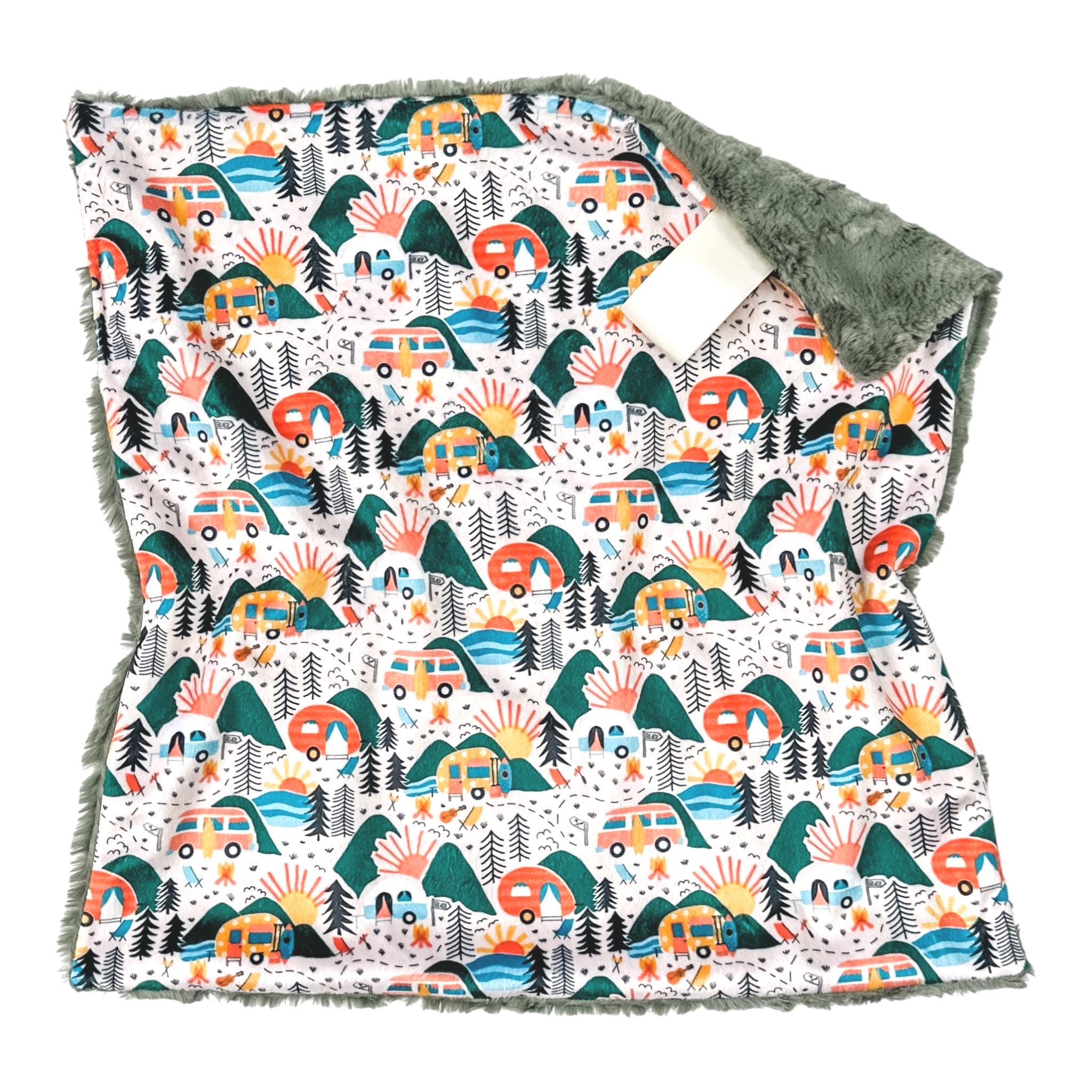 Camping Adventures Lovey Blanket | Soft Cuddle Security Blanket | Baby Gift for Girl | Handmade Baby Lovey | Outdoors Nursery Decor